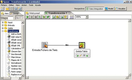Nuestra primera transformación con Data Integration 4 será leer de un archivo y volcar a tabla. Es aqui donde empezamos a notar los cambios visuales comentados: