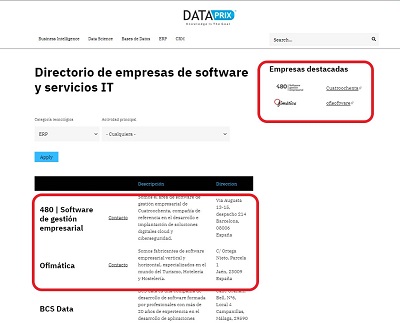 Asimismo, si desea obtener mayor visibilidad en el directorio, le recordamos que por sólo 100€ al año su empresa ocuparía siempre las posiciones superiores, e incluiríamos en el espacio de empresas destacadas del lateral la compañia, con su logotipo y un enlace directo a su sitio web.