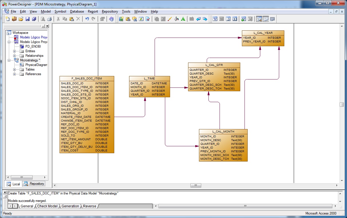 DW è un analisi di vendita. Nel modello che ho fatto due tabelle, una per le vendite, la cui granularità è a livello del giorno, cliente, prodotto, ecc, e una tabella dei fatti cui registra le informazioni in previsioni di vendita (questa tabella ha un livello di granularità diversi, dove un mese e il livello di canale client (che è uno degli attributi della dimensione Customer)). Le chiavi per la tabella dei fatti non sono dunque le chiavi per la tabella delle dimensioni, ma un componente all'interno di una dimensione.