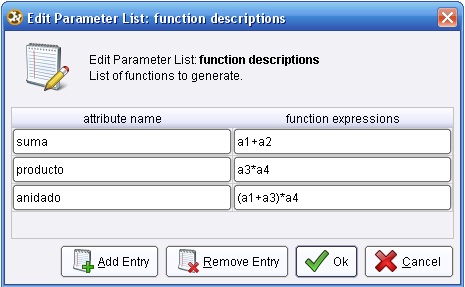 Con el editor del parámetro function descritions, agregar las siguientes funciones: