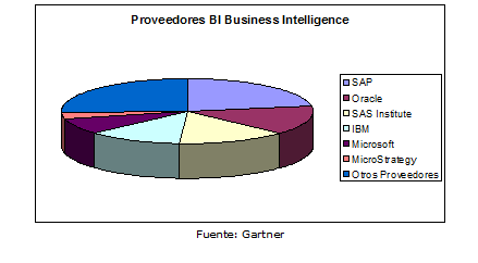 Según sus ventas totales en 2009 y en un estudio realizado por Gartner Group, muestra las posiciones de los diferentes proveedores. SAS
